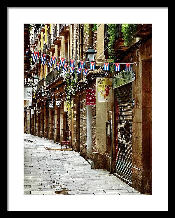 Wander down a charming street in Barcelona, where the spirit of Havana playfully intertwines with classic European architecture. This photograph captures a lively scene, with strings of Cuban flags draped overhead, adding a festive touch to the historic buildings. The narrow cobblestone street, lined with intriguing shopfronts and old street lamps, invites exploration. From the weathered stone walls to the vibrant posters and a lone wooden chair, every detail tells a story of cultural fusion and urban charm. It’s a vibrant blend of tradition and a touch of the exotic in the heart of the city. This photograph is now available to purchase as a print in many formats, including Fine Art Print, Canvas Print, Framed Print, Art Print, Poster, Metal Print, Acrylic Print, Wood Print, Greeting Card and many more!