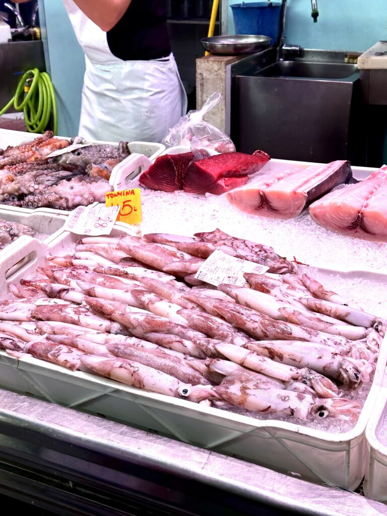 Every visit is an experience. The smell of fresh seafood hits you the moment you walk in, and you can almost hear the Mediterranean calling. I always go straight for the fish stall. There’s a certain thrill in choosing something caught that morning, knowing that it’ll be dinner in just a few hours. Sardines, dorado, or sea bass—it’s all so fresh, and the prices make you feel like you’re winning at life.