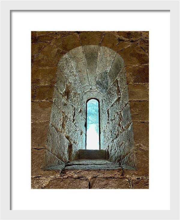 A mesmerizing view from within the historic walls of the Papa Luna Castle in Peñíscola, Spain. This photograph captures the interplay of light and shadow on the ancient stone, highlighting the narrow, arched window as a portal to the modern world outside. It’s a testament to the enduring beauty and history of this medieval fortress on the Mediterranean coast. A narrow stone alcove leads to a small window, allowing sunlight to stream through and highlight the rugged texture of the stone walls. The design suggests historical architecture with an air of mystery.