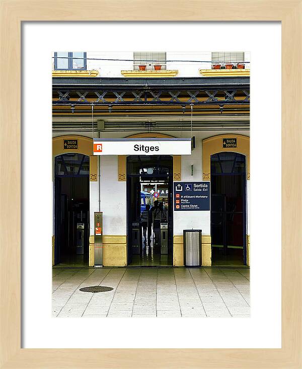 This photograph captures the classic charm of the Sitges train station, a gateway to a beloved Spanish coastal town. The vibrant yellow trim and traditional arches frame the entrance, inviting travelers in and out. The scene is full of authentic details, from the clear “Sitges” sign to the “Salida/Exit” signs pointing the way. It’s a clean and inviting look at the start of a journey, hinting at the sunny beaches and lively streets that await just outside. This photograph is now available to purchase as a print in many formats, including Fine Art Print, Canvas Print, Framed Print, Art Print, Poster, Metal Print, Acrylic Print, Wood Print, and Greeting Card.