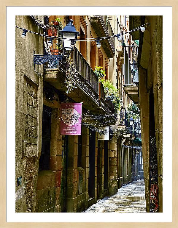 Bring the enchanting glow and inviting atmosphere of Barcelona’s Gothic Quarter into your own space with this stunning image, available as a high-quality framed print. It’s an ideal choice for anyone seeking to add a touch of European charm and the allure of discovery to their home or office decor.