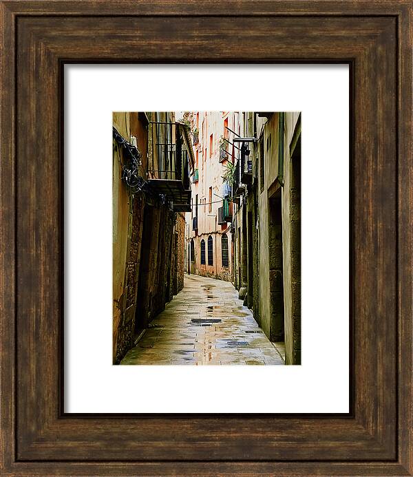 Wandering through the quiet, atmospheric alleyways of Barcelona’s Gothic Quarter, every corner reveals a new story. This photograph captures a moment of serene beauty, where the wet cobblestone street reflects the soft light, illuminating the rich, aged tones of the buildings. The winding passage, lined with balconies adorned with plants and laundry, offers a glimpse into the everyday life of this historic city. It’s a place where the old and the new coexist, creating a moody and timeless scene that feels both deeply authentic and profoundly beautiful. This photograph is now available to purchase as a print in many formats, including Fine Art Print, Canvas Print, Framed Print, Art Print, Poster, Metal Print, Acrylic Print, Wood Print, Greeting Card and more!