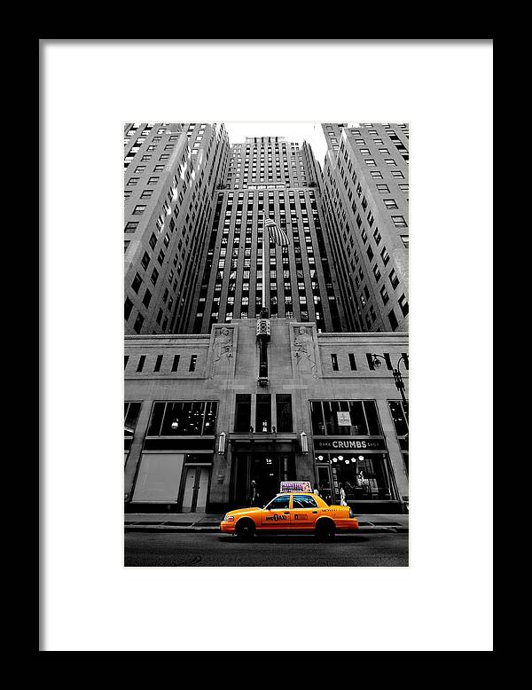 NYC Yellow Taxi and Towering Skyscraper Framed Print