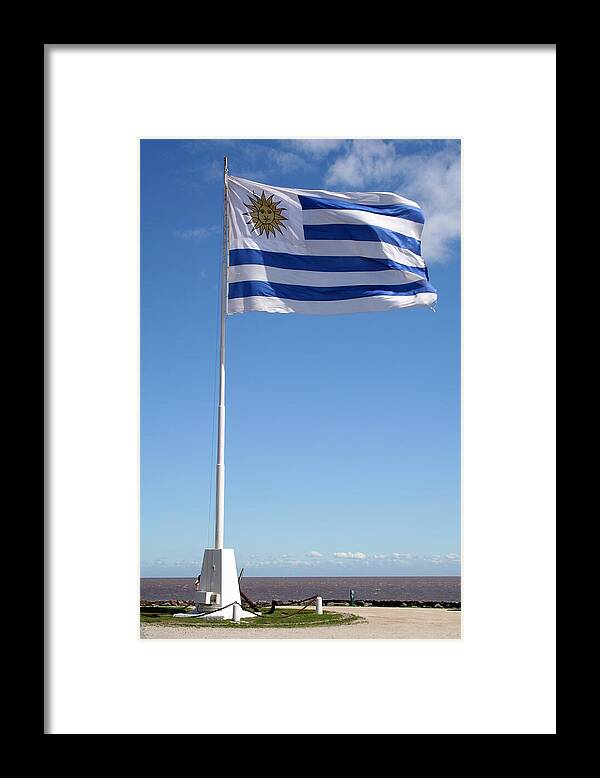 Uruguay’s Flag Flutters Under Blue Sky Framed Print