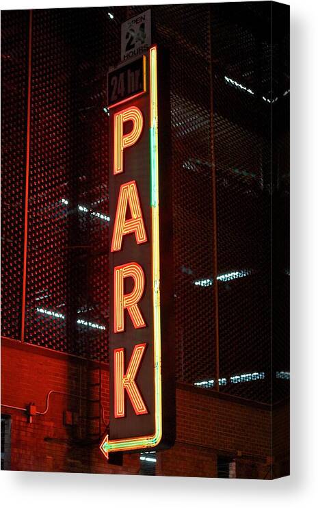 Vivid Neon at the Night, 24-Hour Parking in NYC Canvas Print