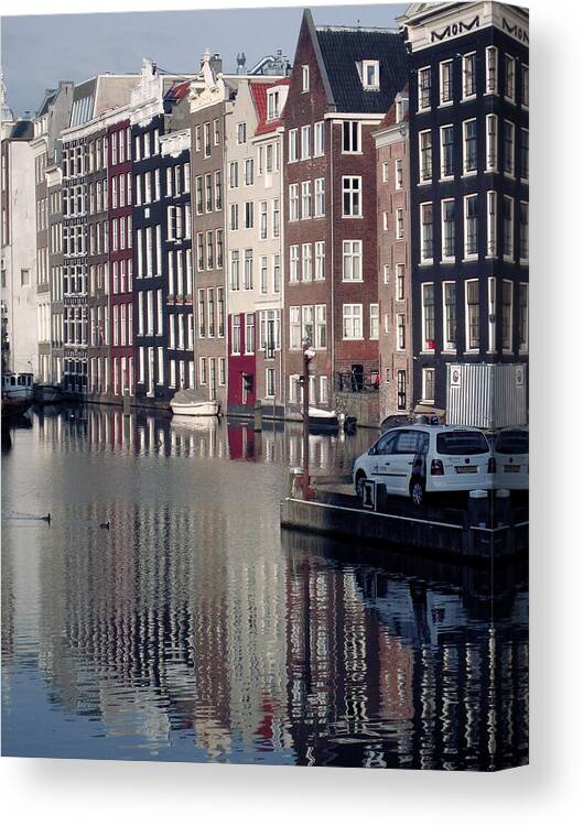 Amsterdam’s Colorful Canal Reflections Canvas Print