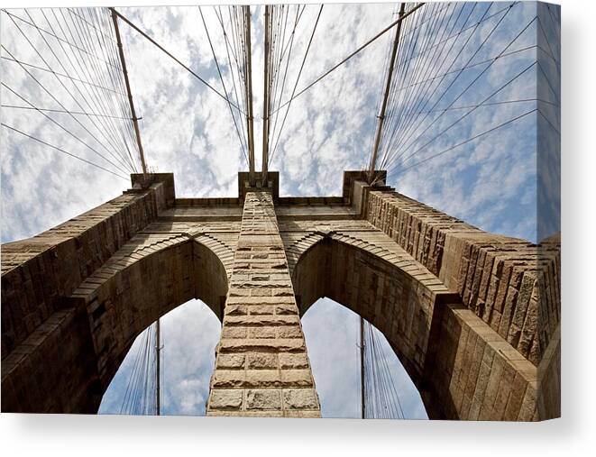 Majestic Brooklyn Bridge Against a Cloudy Sky Canvas Print