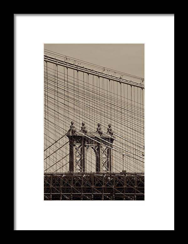 New York City Majestic Bridges in Sepia Tone Framed Print