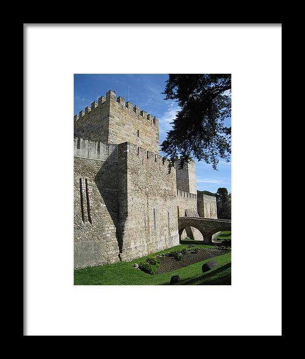 A medieval stone fortress stands under a clear blue sky, with robust walls and defensive towers showcasing its historical military architecture. Lush green grass and well-kept gardens surround the structure, enhancing its ancient grandeur against the natural backdrop.