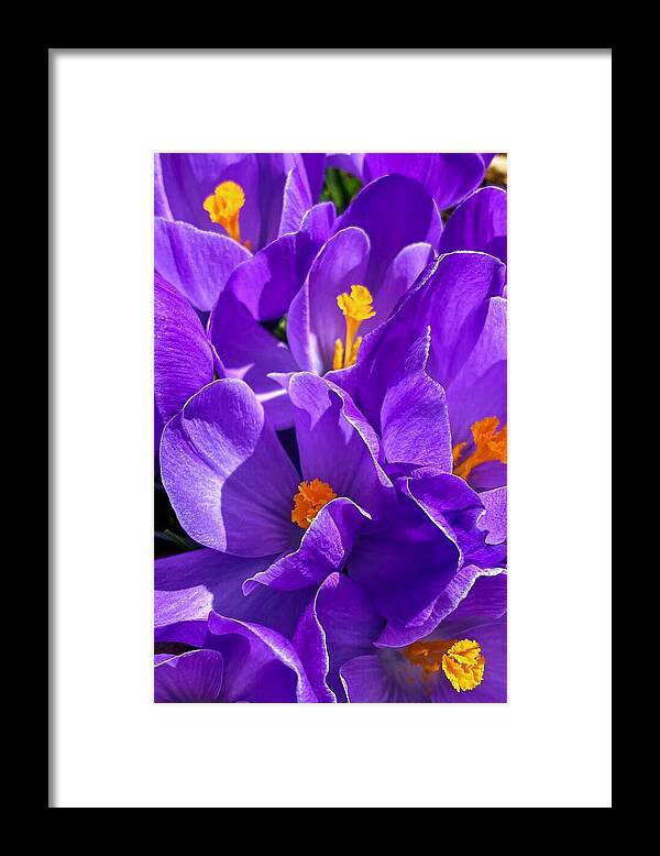 Sunlit Splendor Vibrant Purple Crocuses in Bloom Framed Print