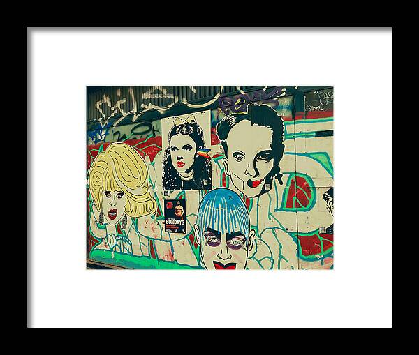 Urban Graffiti with Bold Faces and Colors in Barcelona Framed Print