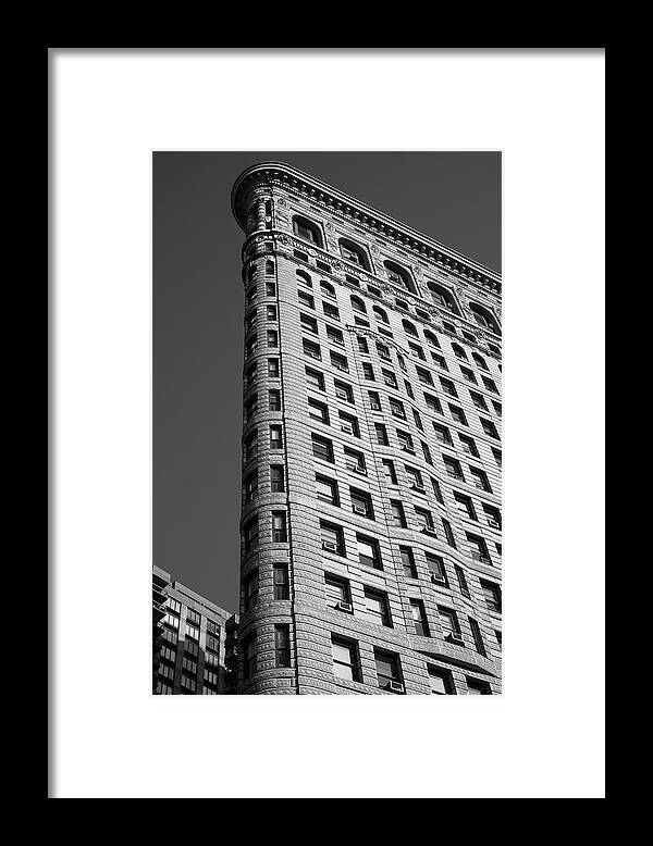 NYC Flatiron Building and Urban Contrast in Black and White Framed Print