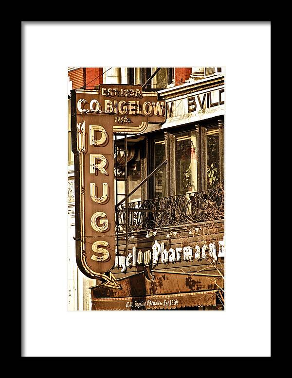 Bigelow’s Legacy, Vintage Drugstore in New York Framed Print