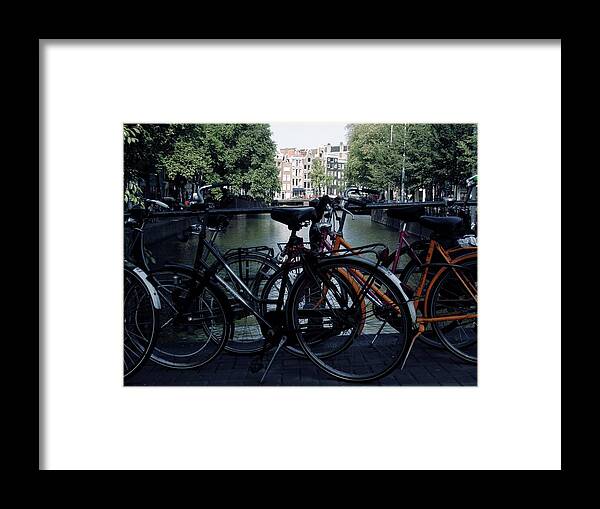 Amsterdam Streets, Pedaling Through Urban Motion Framed Print