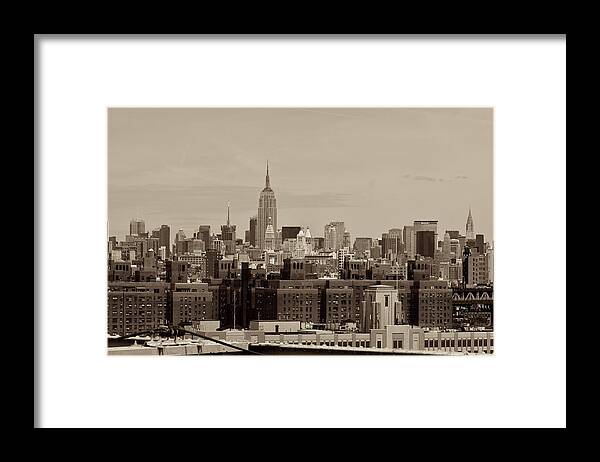 NYC Sepia Skyline, Iconic Empire State Silhouette Framed Print
